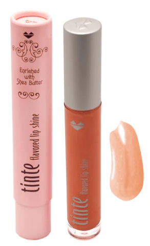 Peach Flavored Lip Gloss • Peachie Sheen Peach Flavored Lip Gloss - Peach Flavored Lip Shine • Peachie Sheen - Full of Sexy shine, this shade is the perfect natural peach color with the taste of ripe peaches and vanilla. The scent of sweet peaches and cream will bring you back to simpler times!! Nourish your lips with our moisturizing Shea Butter infused lip gloss! Best lip gloss for chapped lips! Paraben Free. Products tested on boys, not animals! Best Lip Gloss For Chapped Lips - Peach Flavored Lip Gloss is the best lip gloss for chapped lips. Don't leave your lips unprotected! Dry hot climates, Cold winter air, wind, sun & licking your lips can lead to the depletion of moisture in your lips causing them to dry out, chap and crack. This leads to discomfort, disgusting and un-kissable lips!! That's why we're going to tell you TINte Cosmetics Flavored Lip Gloss is the best lip gloss for healing, soothing and moisturizing dry, chapped lips. Shea Butter - Our Peach Flavored Lip Gloss - Flavored Lip Shine is enriched with Shea Butter, the definition of Shea Butter (from Wikipedia) Shea Butter is an off- white or ivory-colored fat extracted from the nut of the African shea tree (Vitellaria paradoxa). Shea butter is a triglyceride (fat) derived mainly from stearic acid and oleic acid. It is widely used in cosmetics as a moisturizer, salve or lotion. Shea butter is edible and is used in food preparation in Africa. Flavor - Our Peach Flavored Lip Gloss - Flavored Lip Shine has a sweet flavor of bowl of peaches and cream. Deliciously flavored lip gloss from Tinte provide your senses with an alternative from the traditionally bland taste of cosmetics. Our peaches and cream flavor has the aroma of a bowl of peaches with cream. Yum, Yum, Yum!